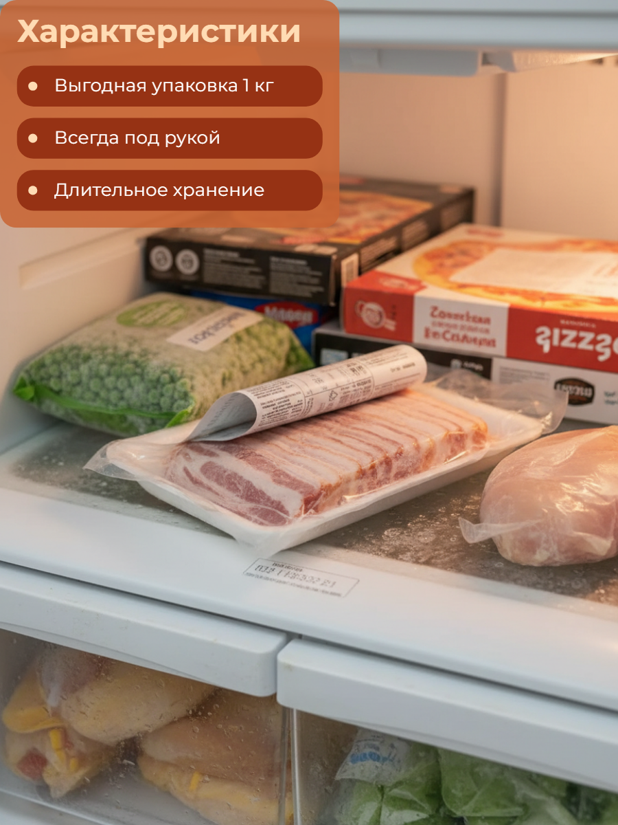 - Формат: Нарезка тонкими слайсами, которые удобно разделять даже в замороженном виде.