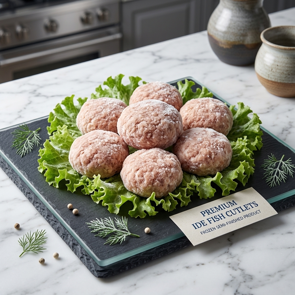 Рыбные биточки из язя, замороженные. Удобный полуфабрикат для быстрой жарки или запекания — экономит время и подходит для семейного обеда или ужина.