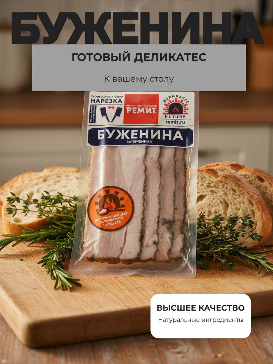 Буженина запеченная торговой марки «РЕМИТ» — это сочный и ароматный деликатес с изысканным вкусом, приготовленный по традиционному славянскому рецепту. Запеченную буженину можно подать как на повседневный, так и на праздничный стол, чтобы порадовать домашних и гостей. Нежнейшее мясо с приятными нотками красного жгучего перца точно не оставит гурмана равнодушным. Производитель четко следует рецептуре и соблюдает выверенный баланс соли и ароматных специй. Мясо запекается в печи, что помогает добиться восхитительного вкуса.