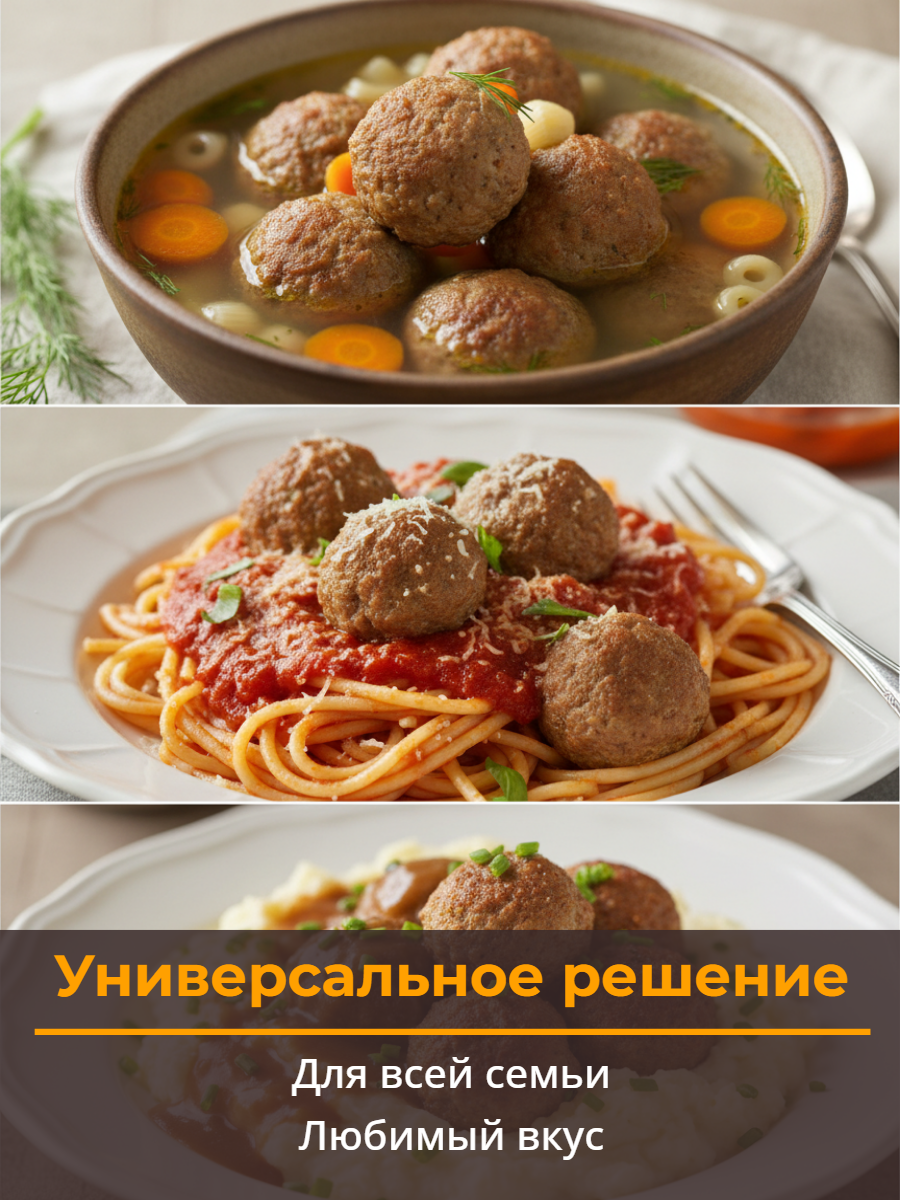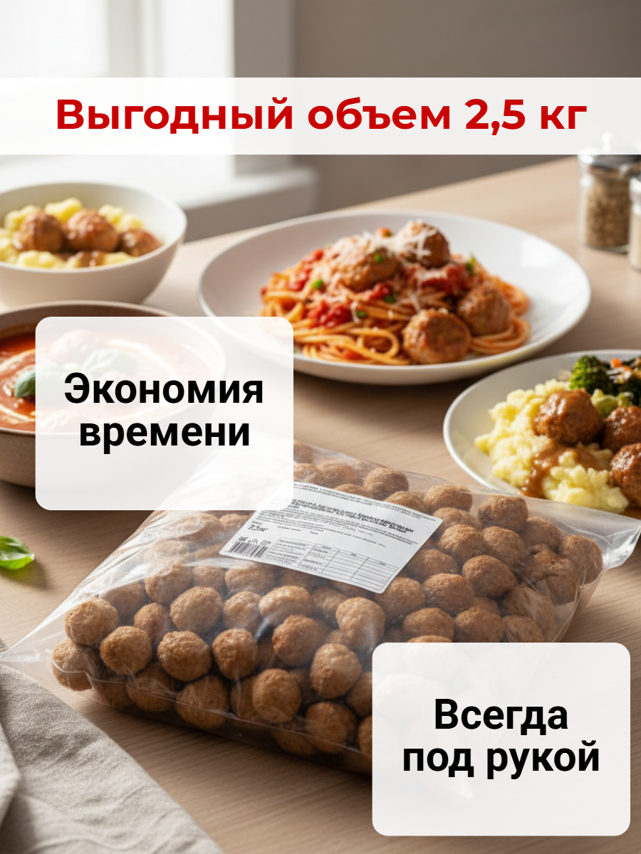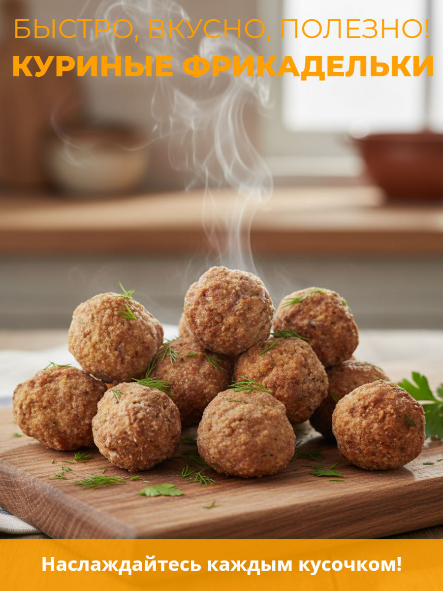 Обжаренные без панировки фрикадельки с золотистой корочкой. Шарики почти идеальной круглой формы, нежные и сочные с ароматом пряностей.