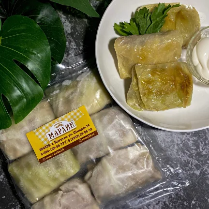 Нежные капустные листья, фаршированные смесью говядины и свинины с рисом и специями. Готовы к разогреву в соусе или запеканию — идеальны для семейного обеда или ужина.