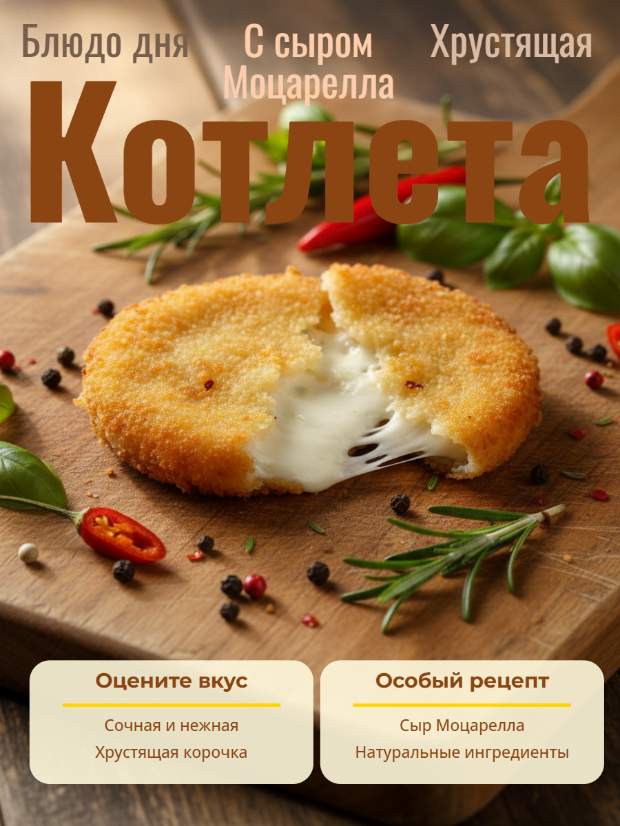 Котлеты с сыром Моцарелла «Оригинальные» от Chizio — замороженный кулинарный продукт, идеально подходящий для приготовления аппетитных бургеров с тянущейся сырной начинкой. Изготовлены из сыра Моцарелла с хрустящей панировкой, обеспечивающей насыщенный вкус и текстуру. Диаметр 80 мм и вес 67 г подходят для компактных бургеров. Упаковка содержит 15 котлет, общий вес 1 кг
