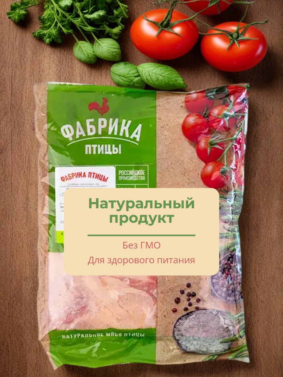 В качестве сырья используются тушки цыпленка-бройлера. Мясо не водянистое, не имеет посторонних привкусов. Остается сочным при приготовлении.