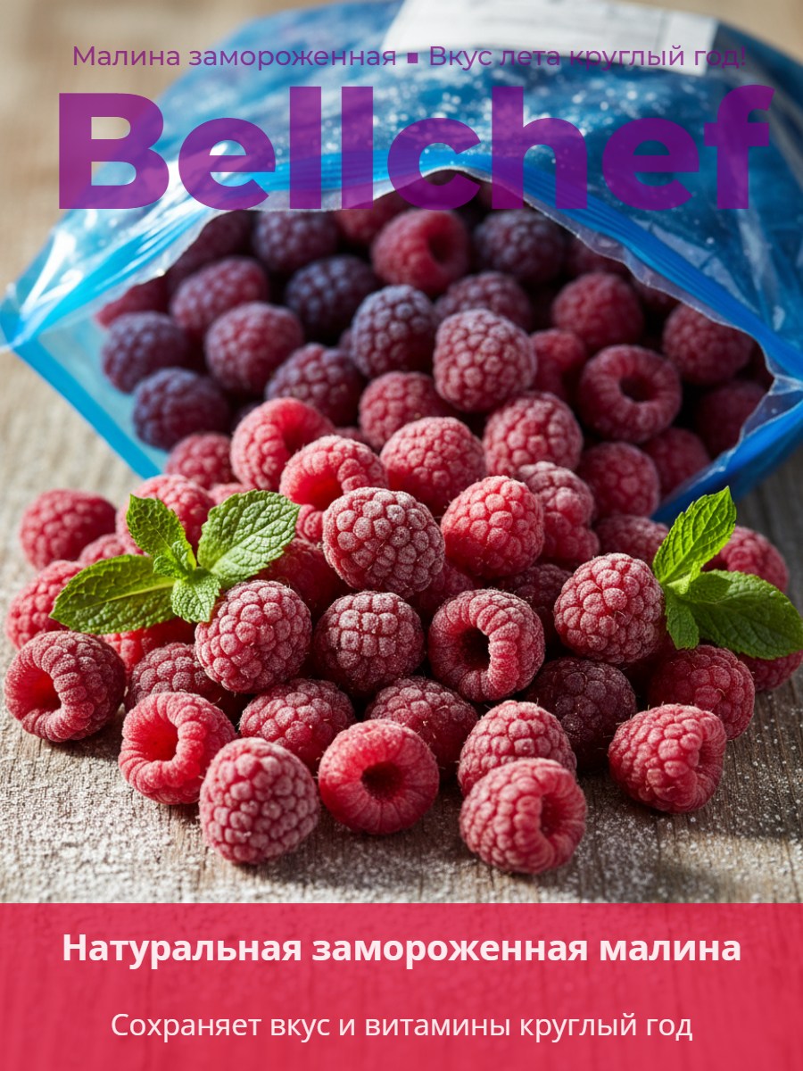 Цельные отборные ягоды малины имеет красный цвет, нежную, тающую и сочную текстуру, сладкий вкус с яркой кислинкой и насыщенный ягодный аромат.