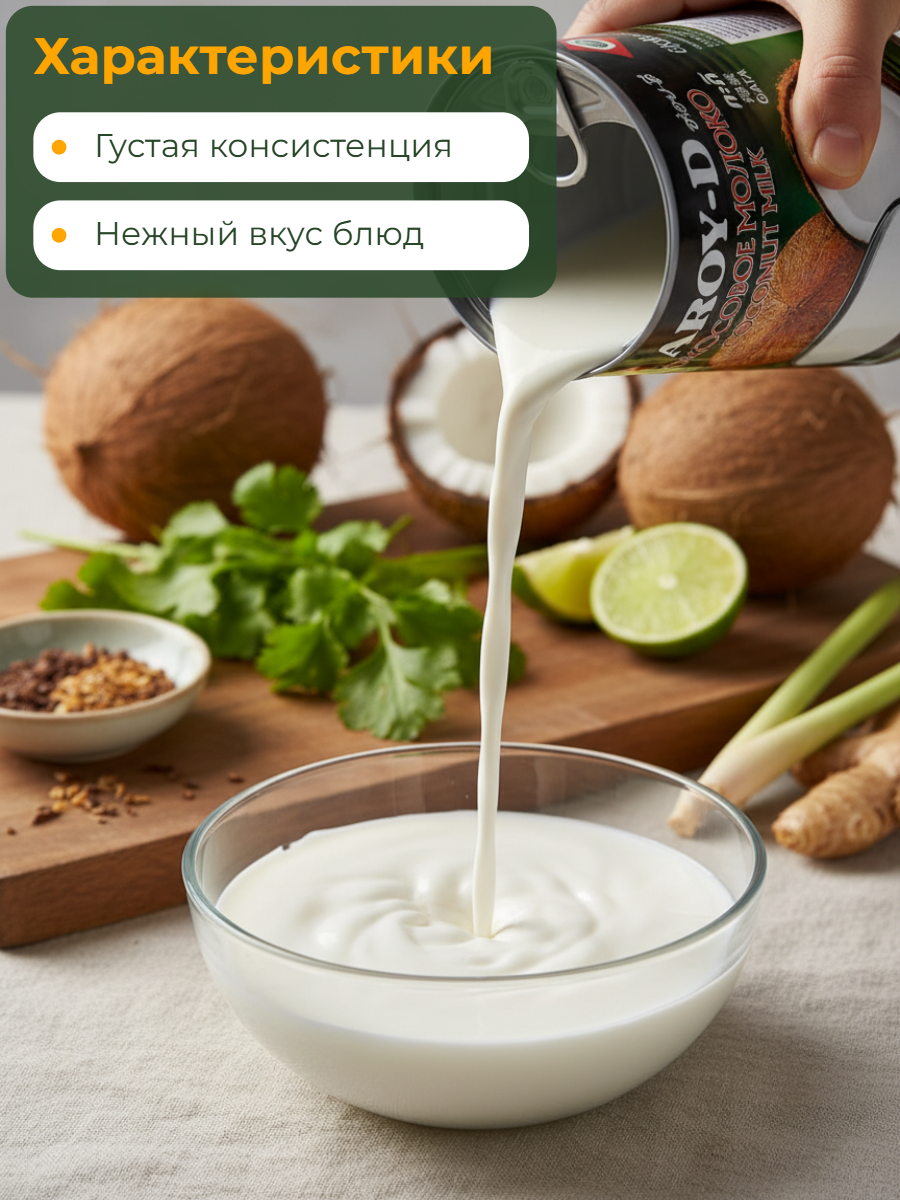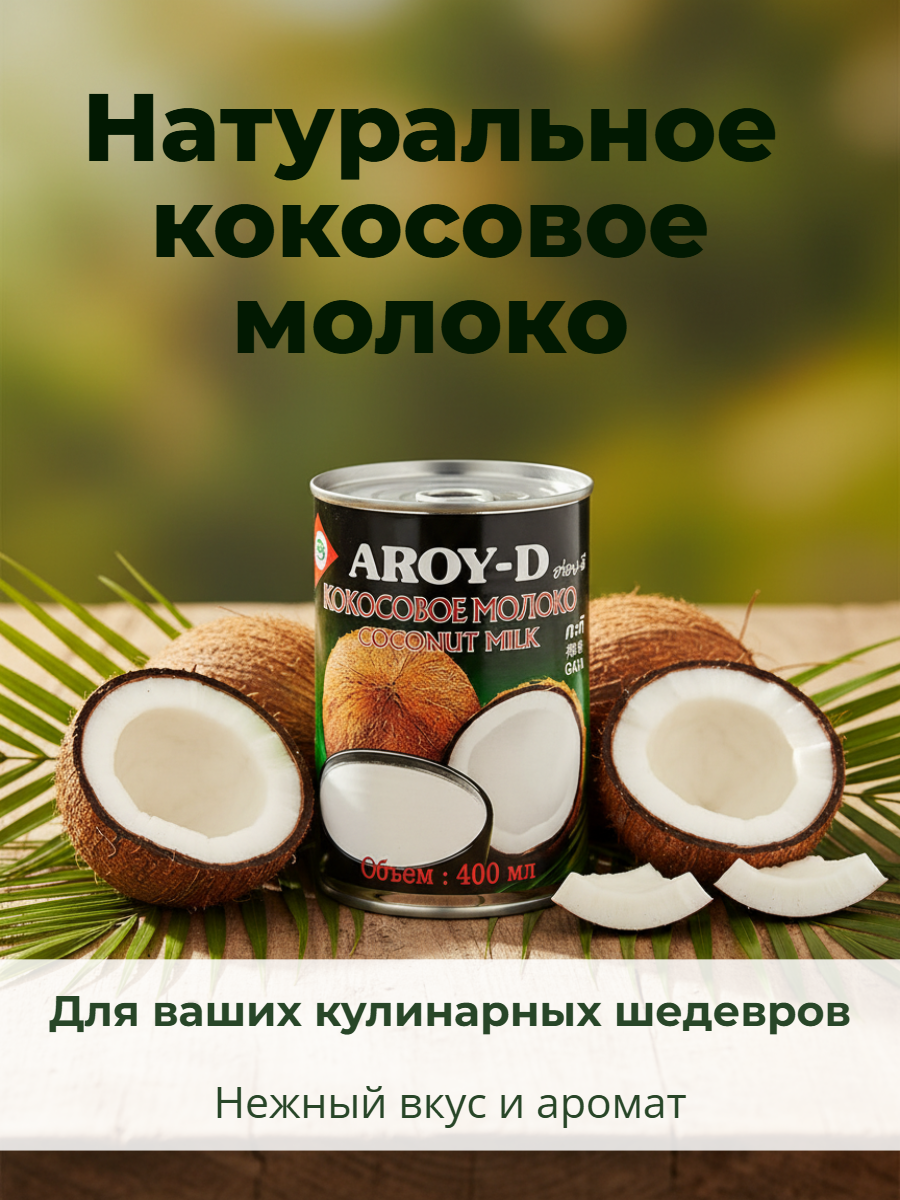 Кокосовое молоко Aroy-D идеально подходит для азиатской кухни и придает блюдам сливочную текстуру и мягкий ореховый вкус.
