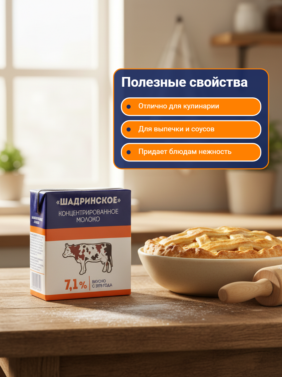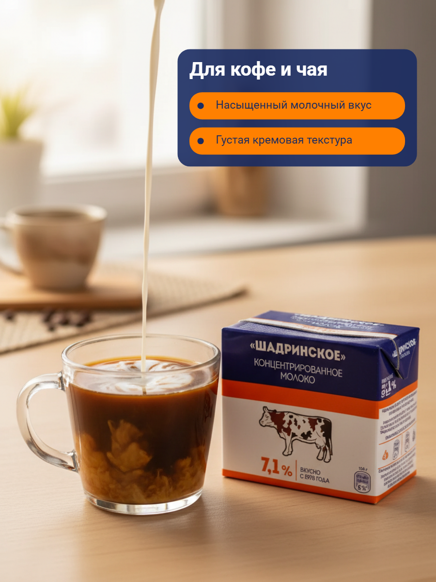 Концентрированное молоко со сладковатым сливочным вкусом и едва уловимой солоноватостью, с легким ароматом топленого молока.
