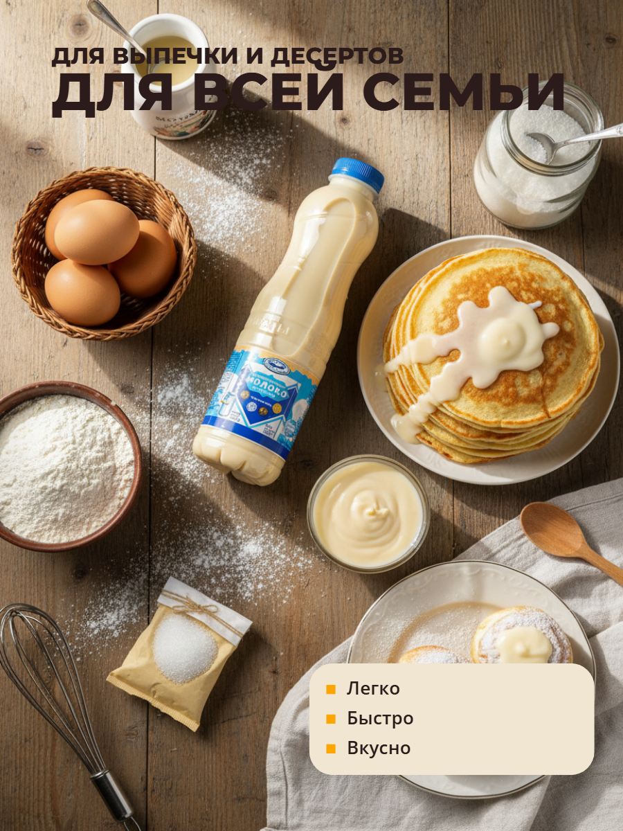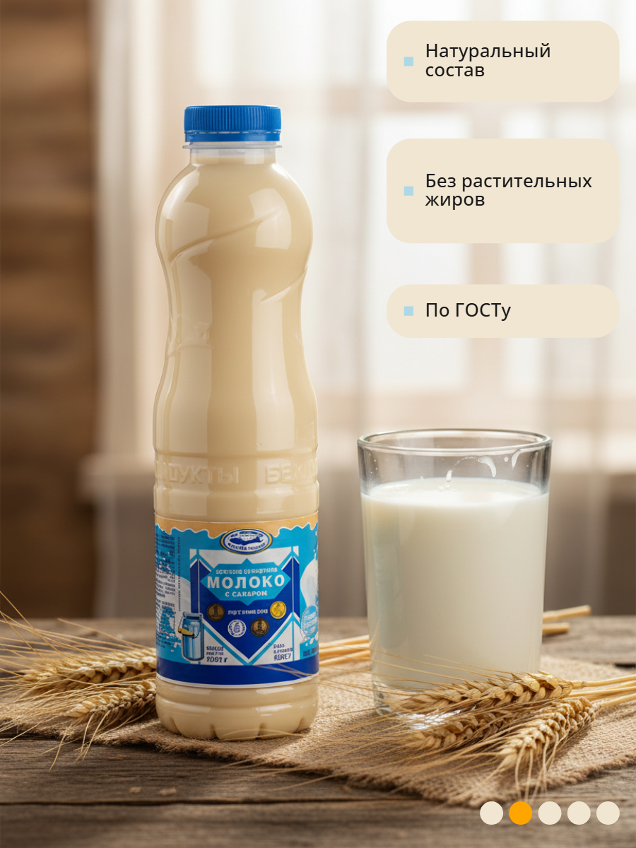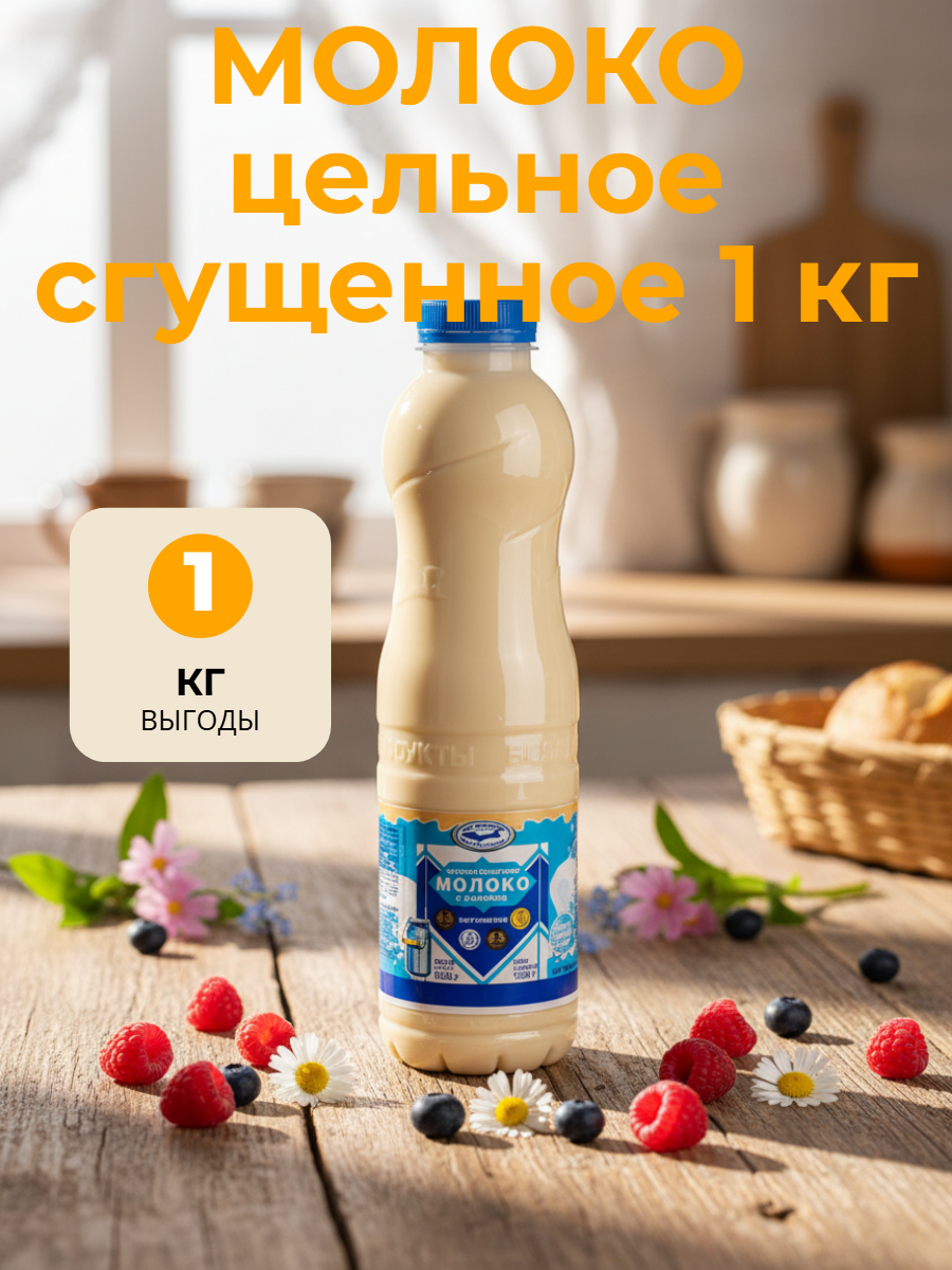 Цельное сгущенное молоко с сахаром жирностью 8,5% производства «Белгородские молочные продукты» (ранее — Белгородский молочно-консервный комбинат) — это высококачественный продукт, соответствующий требованиям ГОСТ 31688-2012. Продукт выпускается в ПЭТ-бутылках весом 1 кг и поставляется упаковками по 9 штук