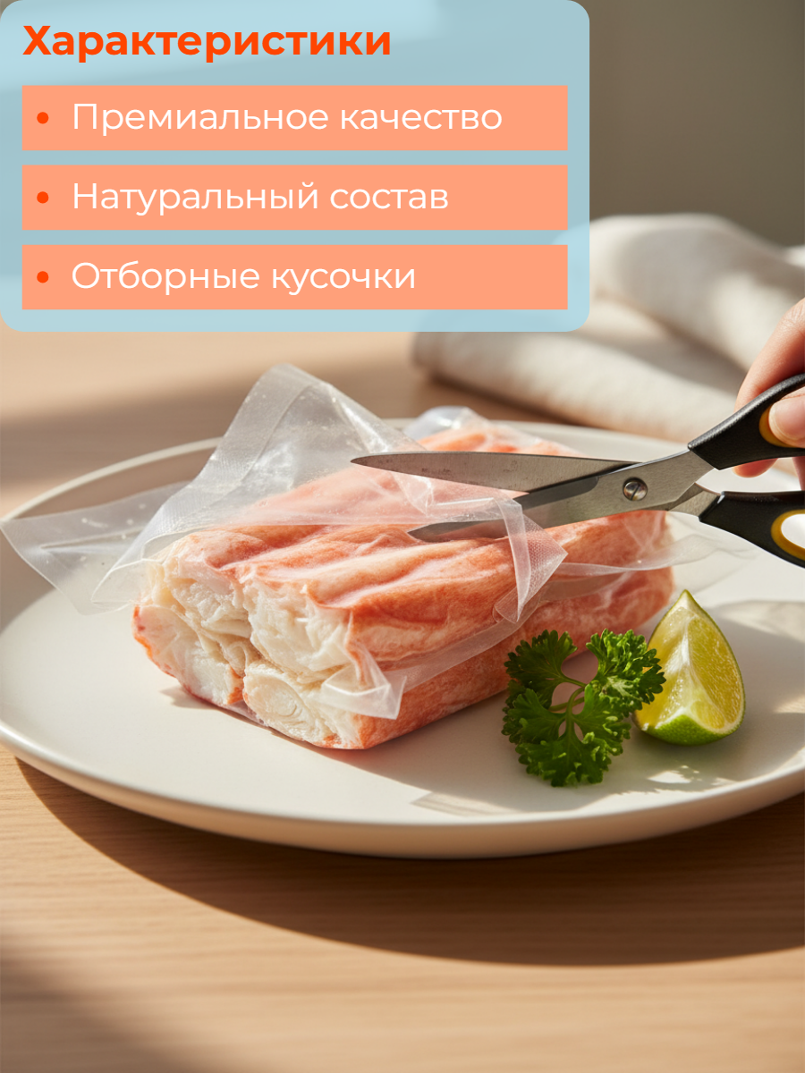- Вид: Камчатский краб — самый ценный и узнаваемый вид краба с выраженным сладковатым вкусом.