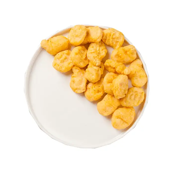 Мясо курицы, вода питьевая, мука: пшеничная, соевая, рисовая; мука из твердых сортов пшеницы (дурум), глютен пшеничный, крахмал: кукурузный, пшеничный, картофельный; стабилизатор