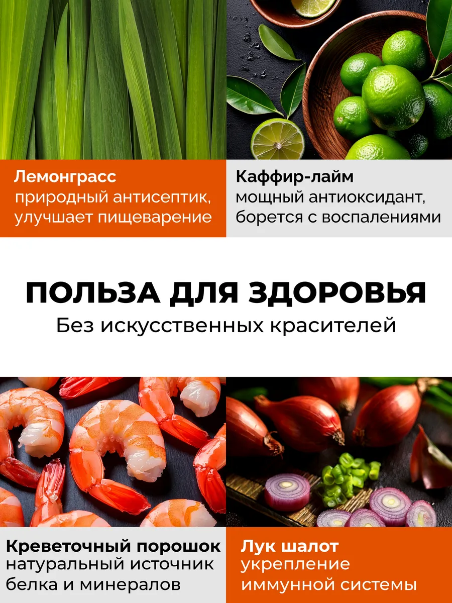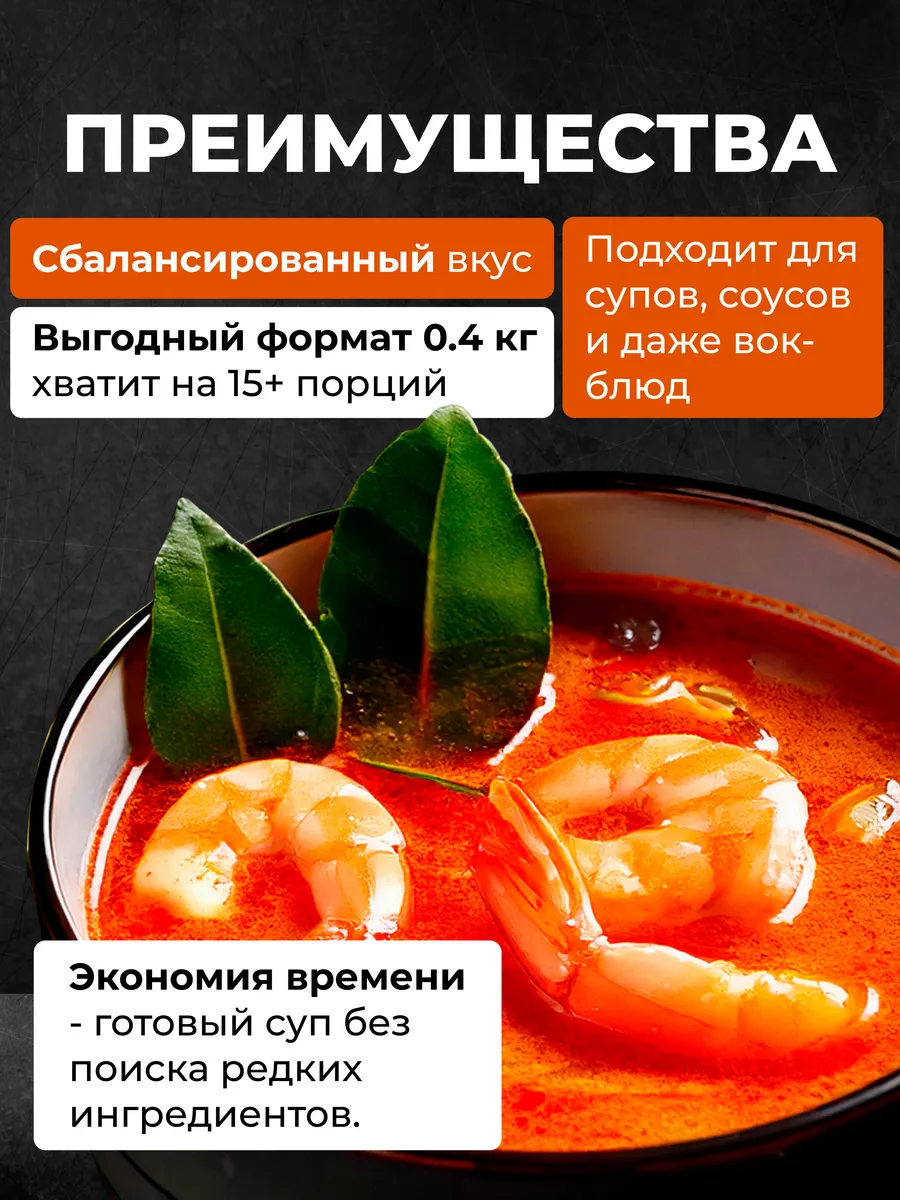 Приготовьте блюдо, как в ресторане вместе с настоящей пастой Том Ям. Идеально подходит как основа для создания вкусных и ароматных соусов для мяса Упаковка пасты Том Ям 400 гр удобен для любителей Том Яма. Понравится тем, кто ценит вкус и уделяет внимание здоровому питанию, особенно тем, кто любит соевый соус без сахара. Это настоящая заправа из категории тайские товары. Пикантная кисло-сладкая паста суп Том Ям Aroy-D - отличная заправка и основа уникальной в своем роде тайской кухни, благодаря которой каждый может у себя дома приготовить традиционный суп Том Ям, почувствовать аромат овощей. Удобная упаковка, благодаря которой паста может храниться в холодильнике, позволяет насладиться тайскими блюдами на основе этой приправы не один раз.