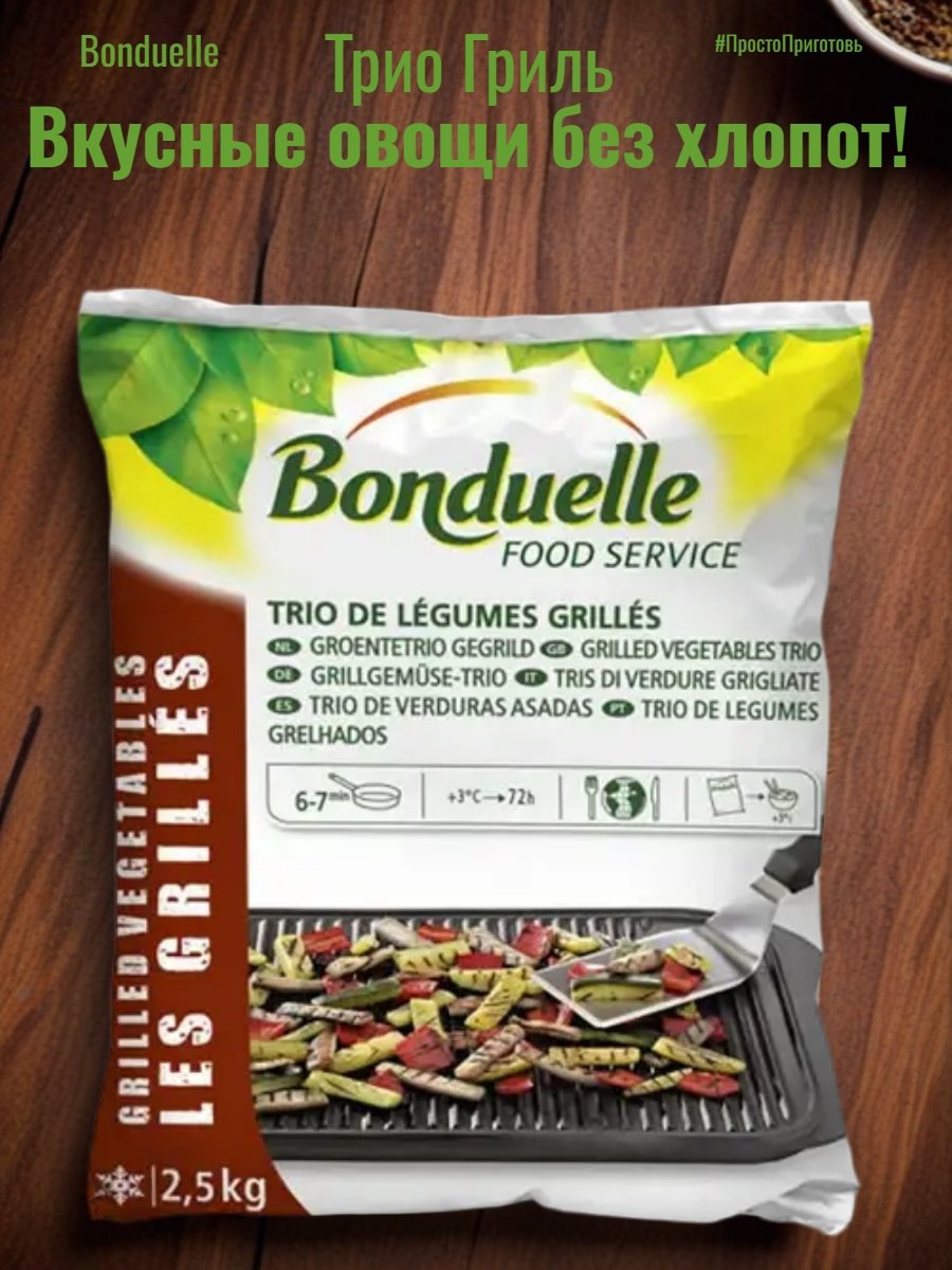 Овощи в кулинарном трио из кабачков, перцев и баклажанов благодаря шоковой заморозке сохранили все витамины. А благодаря тому, что каждый ингредиент был обжарен на гриле индивидуально — максимум вкуса.