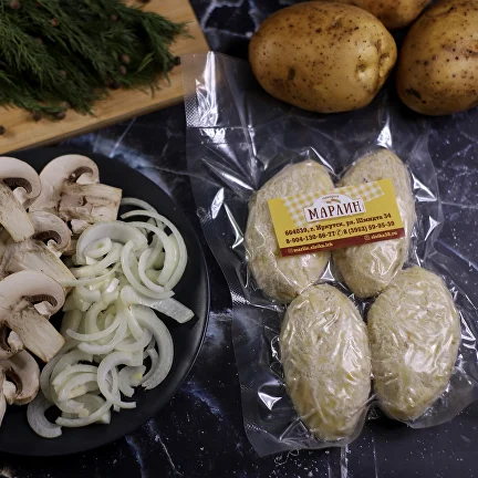 Картофель, шампиньоны, лук репчатый, сухарь панировочный, соль, масло растительное.